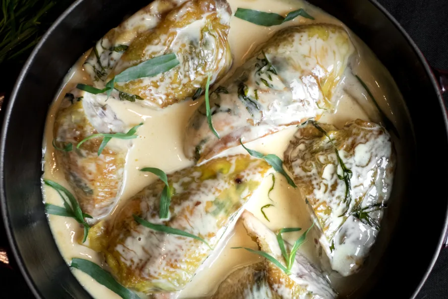 Dette er en klassiker fra Lyon, hvor kremfløte, smør og vin går hånd i hånd.