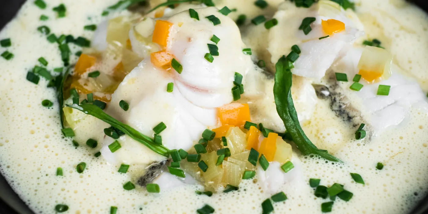 En klassisk Bergensk fiskesuppe har også små fiskeboller formet med teskje og kokt i lettsaltet vann.