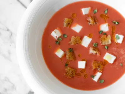 Tomat- og jordbærsuppe