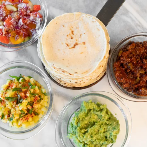 Bland inn potetskivene, smak til med salt og pepper og ha alt over i en ildfast form.